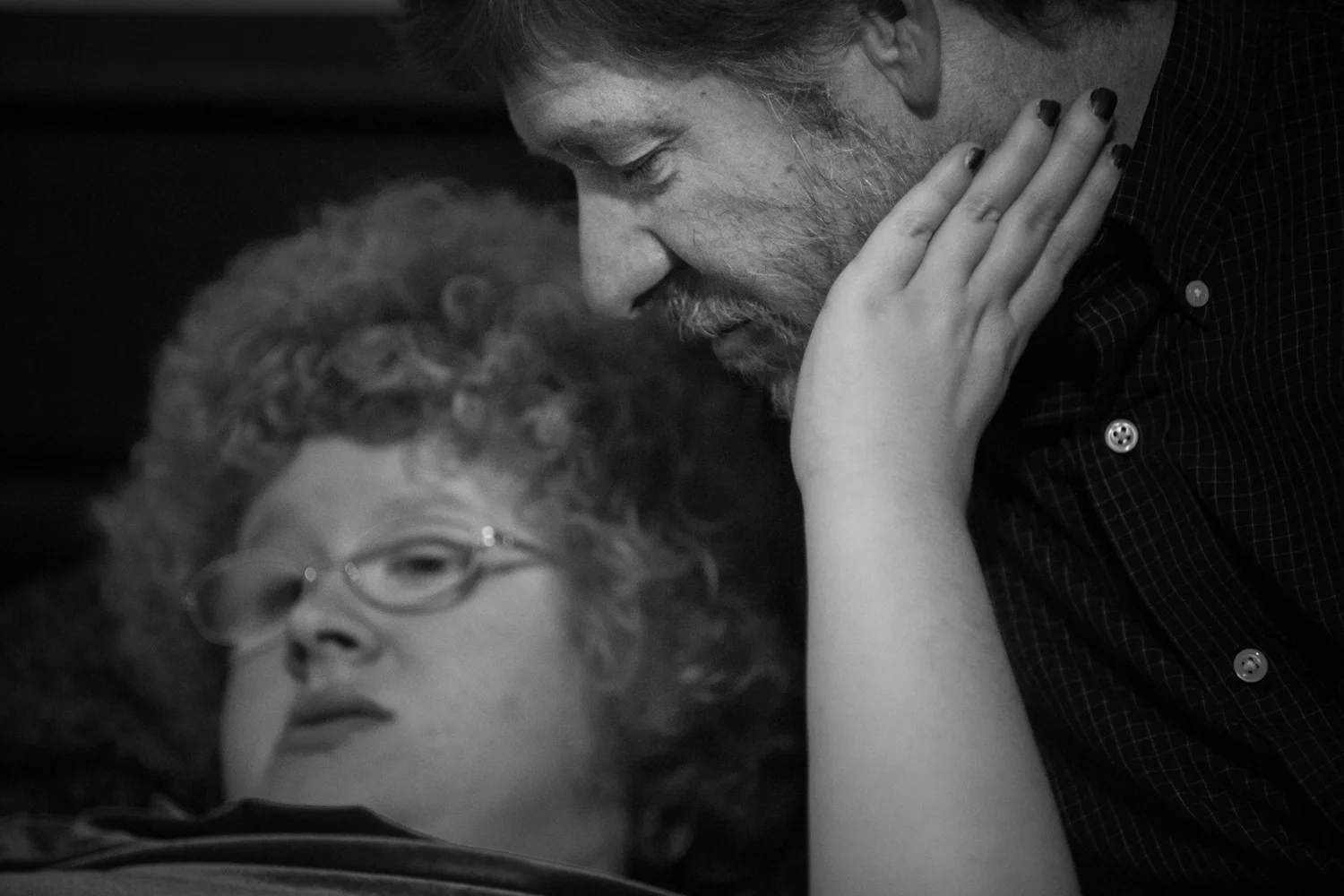 Casey always loved to place both hands on Doug's beard as a tactile stimulant, a common desire for people with autism; however, on this night, the first night in her new home, she did not want to make eye contact or fully engage with her dad, because she knew they were leaving her. That did not stop her from wanting to feel his beard though.